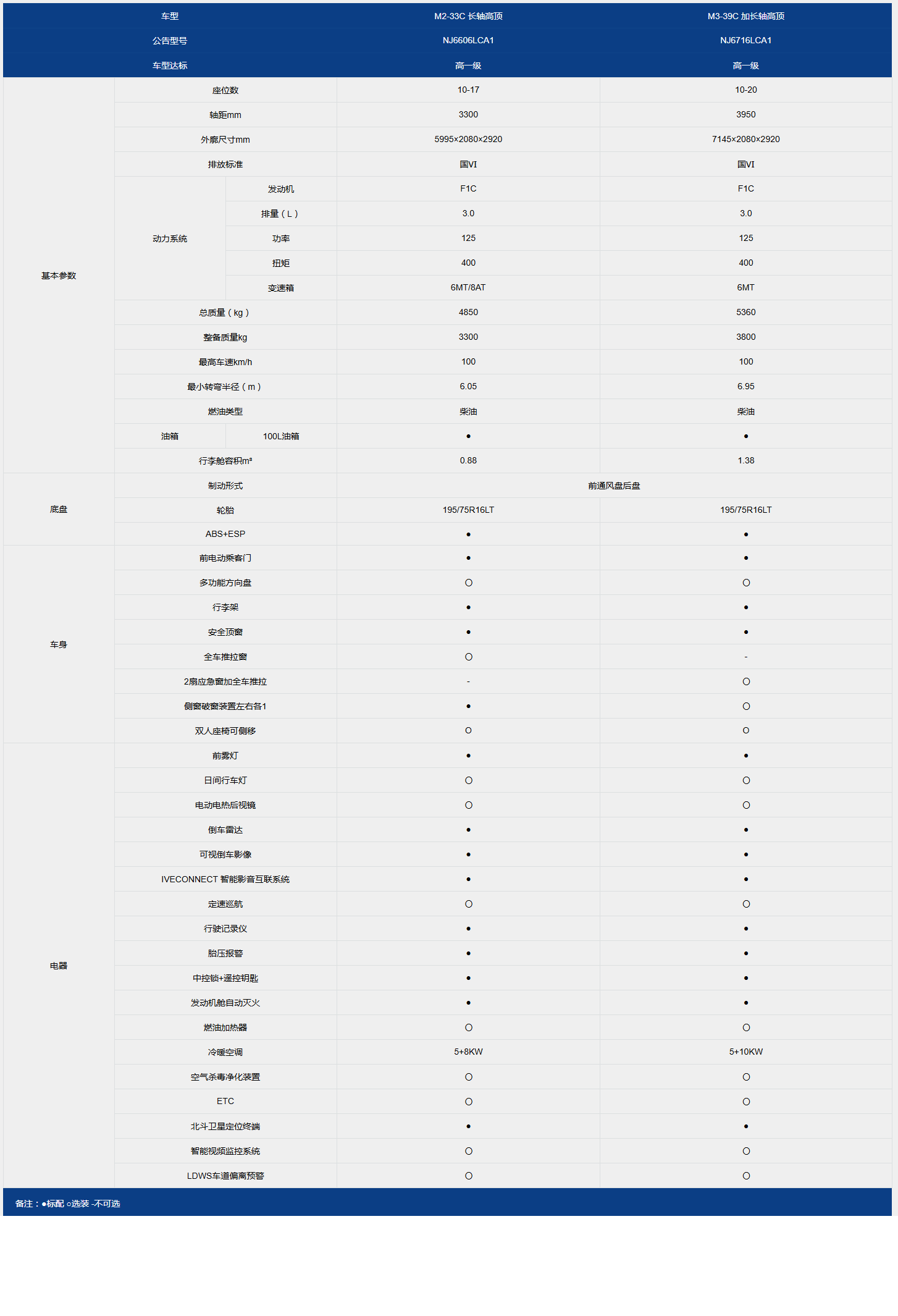 依維柯歐風(fēng)系列 參數(shù)配置表