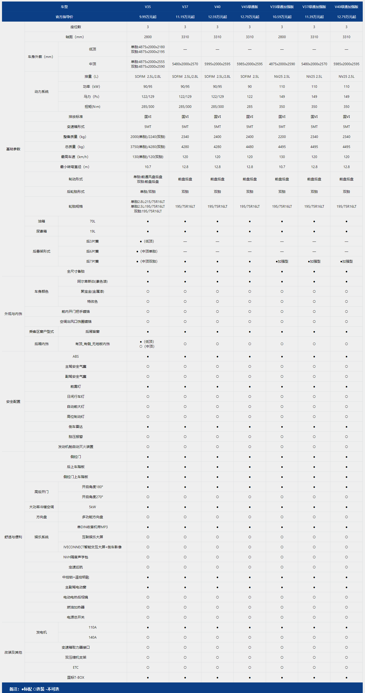 得意廂式車 參數(shù)配置表