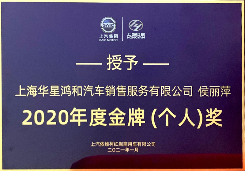 上海紅巖2020年度金牌(個(gè)人)獎(jiǎng)